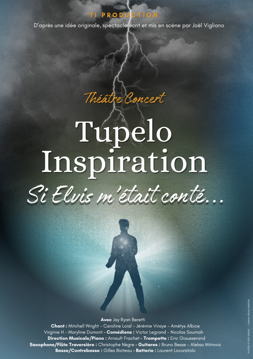 Le théâtre-concert Tupelo Inspiration c'est une histoire imaginée en intégrant divers styles de musiques, une pièce de théâtre et un concert exceptionnel de plus de 40 titres, 24 tableaux. Tupelo Inspiration, c'est des comédiens, des chanteurs, des chanteuses, des choristes, des musiciens… 16 artistes sur scène. Tupelo Inspiration c'est 2 heures 20 de spectacle. Tupelo Inspiration c'est faire partager les sons d'Elvis autrement qu'un air célèbre connu. Des notes sur une musique… de gospel, de rock'n'roll, de jazz ou de la country sans oublier le blues pour les mélodies. Dédicace à ses millions de fans, The King, Elvis Forever.